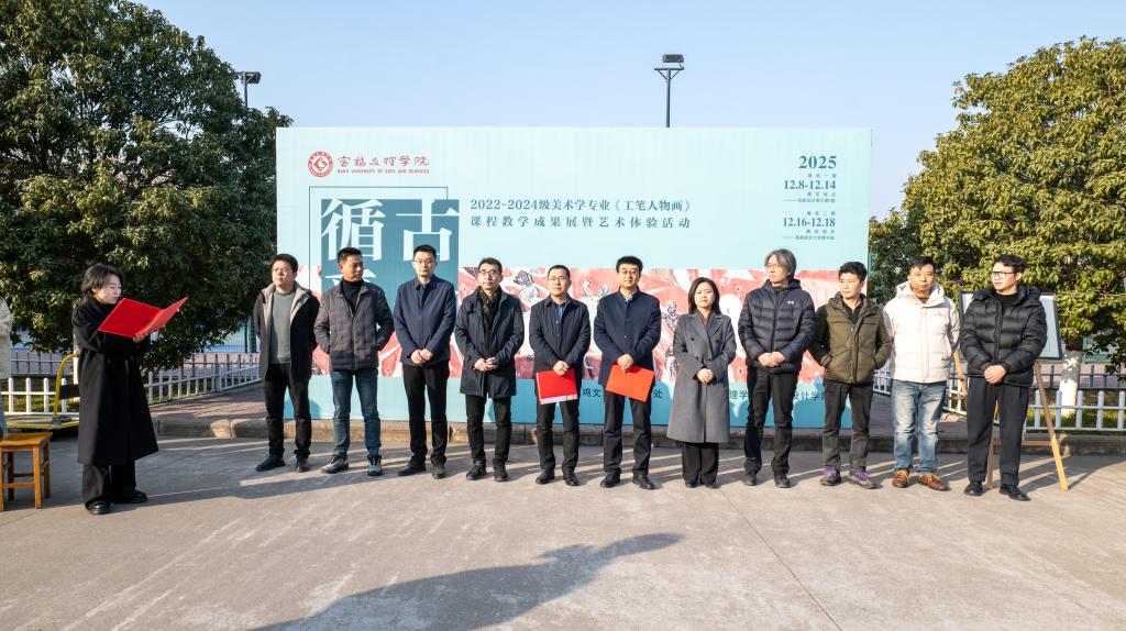 12月18日上午,2138CC太阳集团 “循古觅今”——2022-2024级《工笔人物画》课程教学成果展暨艺术体验活动在校园内举行。党委宣传部常务副部长白志勇出席开幕式并宣布展览开幕,教务处处长周喜华致辞,开幕式由学院副院长马箖珺主持。