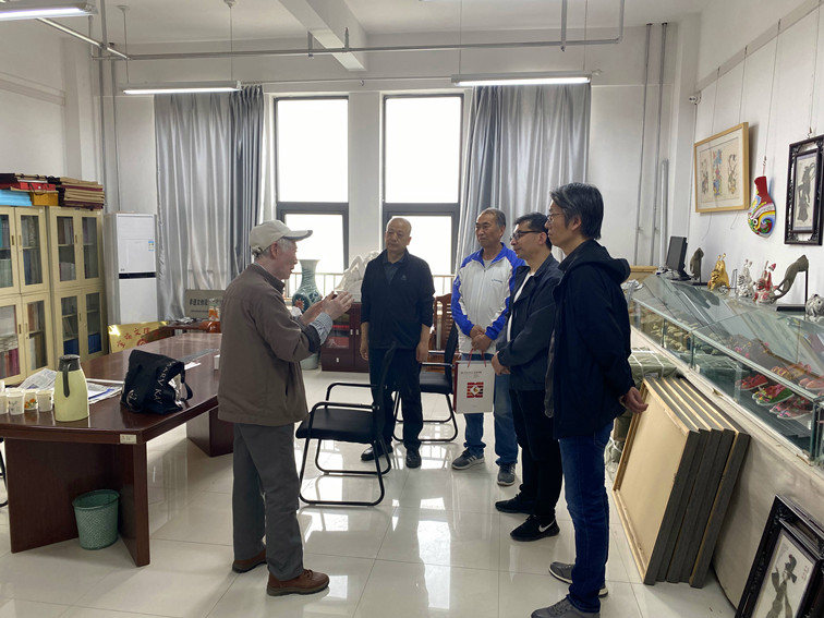 4月20日下午,著名美术史论与民间美术领域专家、西安美术学院原史论系主任、博士生导师王宁宇教授在中国工艺美术大师、凤翔木版年画代表性传承人邰立平先生的陪同下来我校美术学院进行考察与交流,美术学院院长李强、副院长姚刚、李新昌参与交流活动。