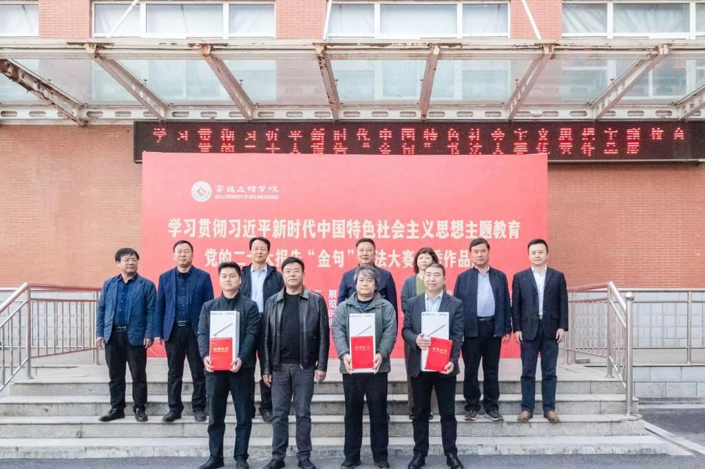 2022年下半年,我校启动了党的二十大报告“金句”书法大赛,比赛收到师生书法作品403幅,经大赛评委会评选,遴选出97幅获奖作品在此次画展中展出。展出作品融合楷书、行书、隶书等传统书法技艺,或古朴雅致,或雄浑厚重,或苍劲有力,通过艺术手法再现了习近平新时代中国特色社会主义思想的新观点、新论断、新思想、新战略、新要求。书法作品展既是对党的二十大报告的再学习,又是对学习贯彻习近平新时代中国特色社会主义思想主题教育的宣传动员。