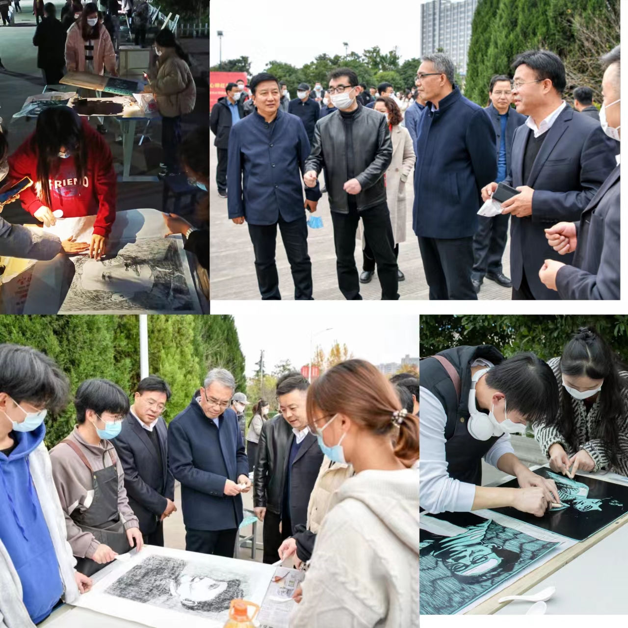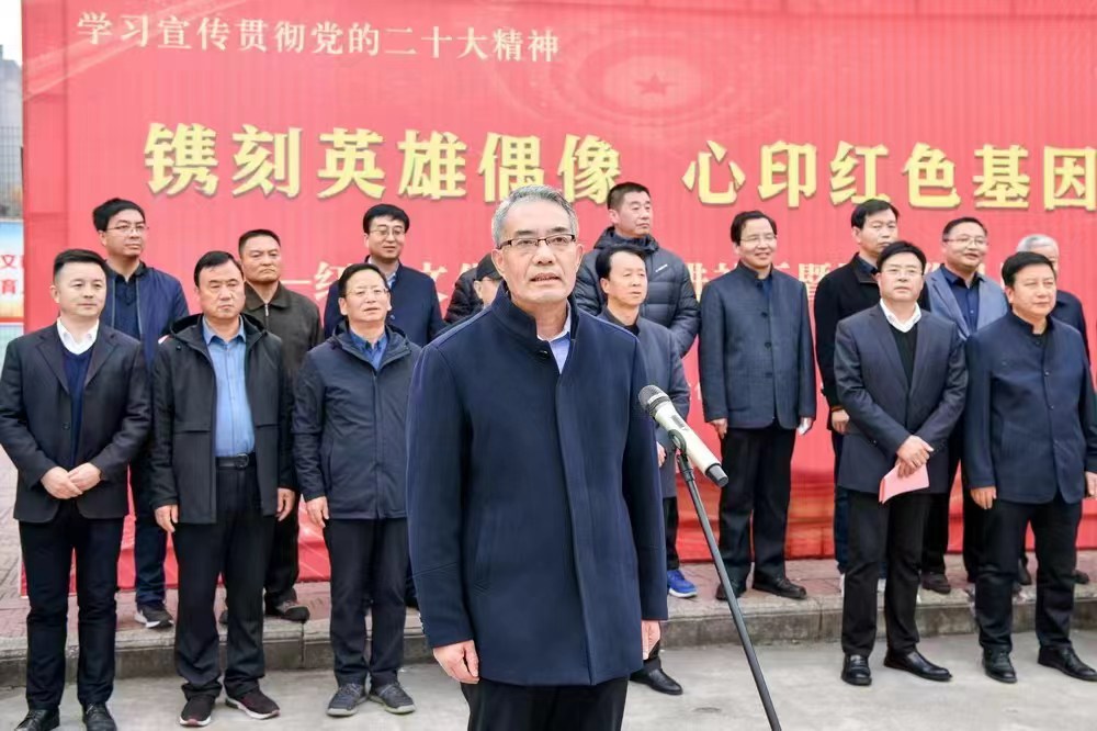 11月18日下午,学习宣传贯彻党的二十大精神“镌刻英雄偶像 心印红色基因”——红色文化进校园进社区暨版画作品展开幕式在高新校区大学路举行。校党委书记赵健出席并宣布版画展开幕,副校长韩干校出席开幕式。开幕式由美术学院院长李强主持,美术学院党委书记田富平致欢迎辞。