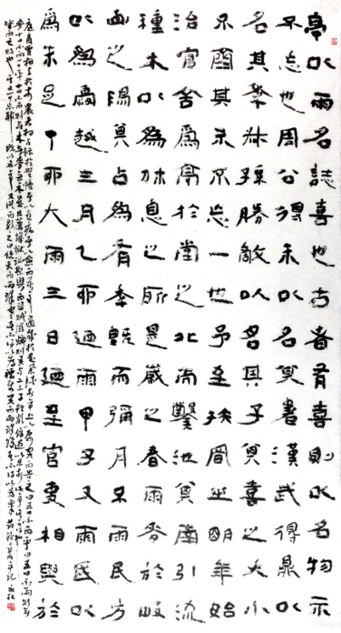 张永红作品曾多次入选中国文联、中国书法家协会主办的首届中国书法兰亭奖作品展、全国第八届书法篆刻展等,荣获“陕西书法奖金奖、银奖”“陕西省优秀青年书法家”称号,被宝鸡市委、市政府授予“宝鸡市有突出贡献的拔尖人才”。本次入选作品是以苏东坡《喜雨亭记》为内容的隶书创作,作品用笔朴厚端庄、风格超俗俊逸,彰显中国审美旨趣,在数千余件应征作品中脱颖而出,成为优秀佳作。