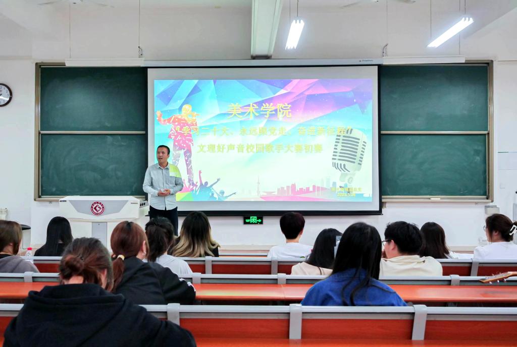 5月24日晚,美术学院团总支在博文楼副楼举办“学习二十大、永远跟党走、奋进新征程”文理好声音歌手大赛选拔赛。学院团总支书记艾萨佧日、部分学生干部及50余名学生观看了本次比赛。