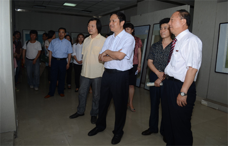 6月19日,党委副书记、校长白黎,副校长傅志军来到艺术楼美术展厅,参观美术系2013届美术学专业优秀毕业创作展。