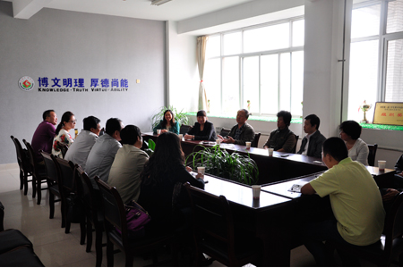 9月25日上午,西安文理学院艺术学院院长郭涛、院党总支书记袁卫敏一行6人来我系考察交流工作。系主任刘进锁、系党总支书记唐晓育、系党总支副书记官莉萍、各教研室主任等与郭涛院长一行进行了座谈。