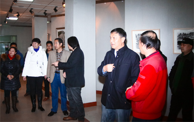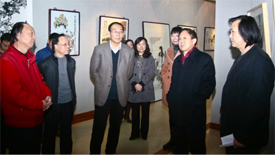 校党办主任王永君、校党委宣传部部长彭志启、教务处处长王富平、美术系党总支书记唐晓育、校办副主任张鹤、美术系党总支副书记官莉萍和美术系部分教师陪同参观。(美术系)