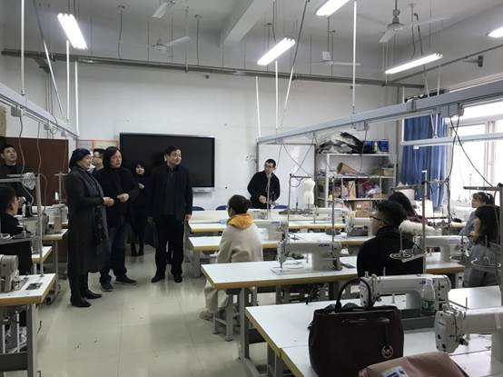 当天上午,美术学院院长王宝强、副院长李强、设计教研室主任高寒冰及服装设计专业的教师与专家组一行进行了座谈交流。王宝强介绍了美术学院的历史发展及学科建设和服装专业教学的基本情况,纪晓峰和张莉分别就目前全国服装设计领域的发展现状和趋势,以及高校服装与服饰设计专业发展和专业教学及特色建设等方面进行了交流,他们对我校服装专业在教学科研方面积极挖掘和开发利用地域民间艺术、青铜器文化艺术资源进行创新设计的教学实践探索给予了充分肯定。座谈结束后,专家组一行参观了关陇民间美术研究所、宝鸡民间美术展厅和服装工艺实验室,并与服装专业学生进行了交流。