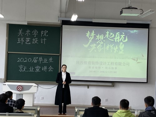 11月1日下午,美术学院在博文楼副楼203教室举行毕业生就业专场宣讲会。宝鸡惟肯装饰设计工程有限公司相关负责人及2020届环境艺术设计专业毕业生参加了宣讲会。