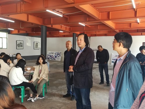 上午,在写生基地工作人员的陪同下,学院领导、老师实地参观了基地周围的自然景观,深入生活场所查看师生宿舍、食堂并认真翻阅了学生的作业,与师生进行了亲切交谈,详细了解他们的生活、学习情况,听取带队老师汇报了写生期间的教学安排。李建峰鼓励学生珍惜写生机会,严于律己,静下心,创作出好的作品。在师生的共同见证下,王宝强与基地负责人张东先生一同为太阳集团2138写生基地揭牌。随后,学院领导、老师与基地工作人员进行了座谈。