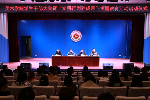 3月13日下午,美术学院在高新校区音乐厅召开了全体学生干部大会暨“文明行为养成月”主题教育活动启动仪式,学院党总支书记李建峰、部分辅导员、全体学生干部、学生党员等300余人参加了启动仪式,会议由党总支副书记常建博主持。