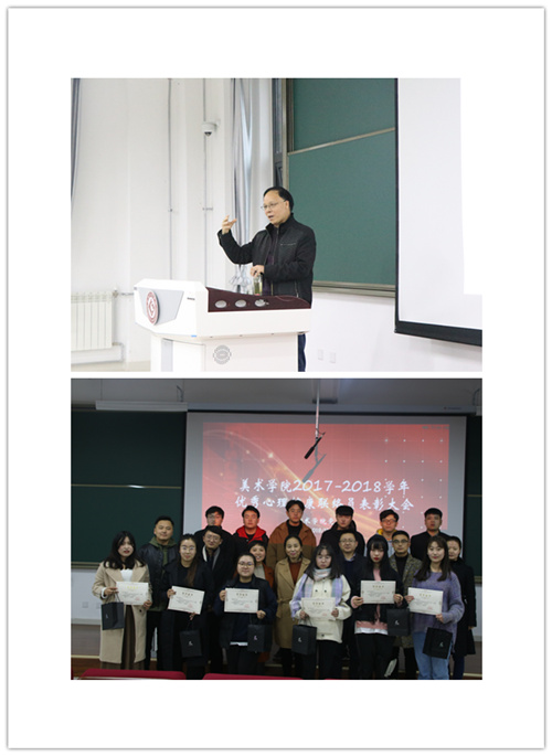 讲座结束后,美术学院党总支隆重表彰了梁帅等9名优秀心理健康联络员、杨云浩等4名心理健康工作特别贡献者,希望全体与会人员学习先进、争当先进,积极宣传心理健康知识,努力做好本职工作,为维护同学们心理健康、构建和谐校园做出更大的贡献。(美术学院党总支文/王小敏)