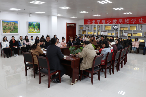 为深入了解少数民族学生在校学习生活情况,促进各民族学生间的沟通交流和文化交融,11月12日下午,美术学院党总支在学院会议室召开了少数民族学生座谈会。学院党总支书记王永琪、党总支副书记常建博、辅导员和所有少数民族学生参加了座谈会,座谈会由辅导员任亚莉主持。