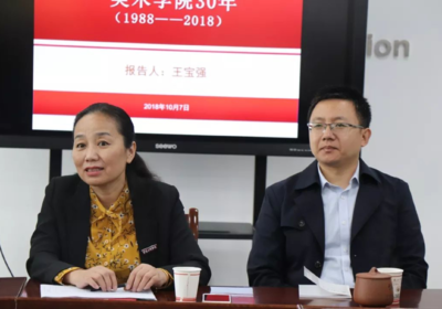 会上,院长王宝强代表学院全体师生对各位校友和嘉宾的光临表示了诚挚地欢迎,并在 致词中回顾了美术学院30年发展历程,向各位校友和嘉宾介绍了学院的办学定位、学科建设、人才培养方案、专业特色建设和发展现状,以促进各位校友能够更快了解我院近况及关注我院的发展状况,并与校友们进行了友好交流与探讨。