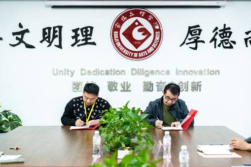 合作协议签字仪式在美术学院博文楼会议室举行。美术学院党委书记田富平、院长李强、副院长姚刚以及教师代表和部分校友出席活动。副院长姚刚主持仪式。