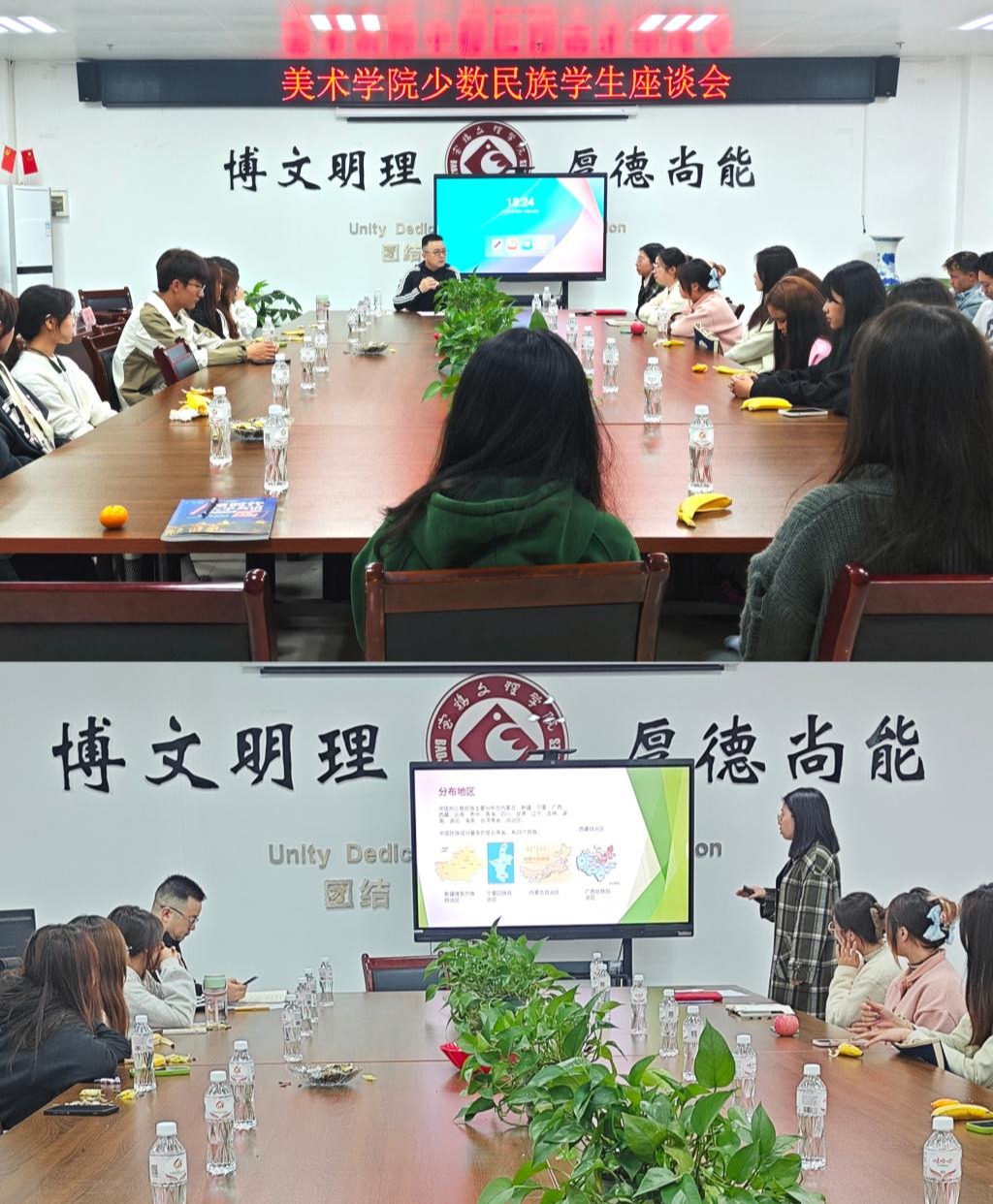 10月24日下午,美术学院党委在博文楼1301会议室召开了民族学生座谈会。学院党委书记田富平、学院辅导员和2023级所有民族学生代表参加了座谈。会议由辅导员安芮影主持。