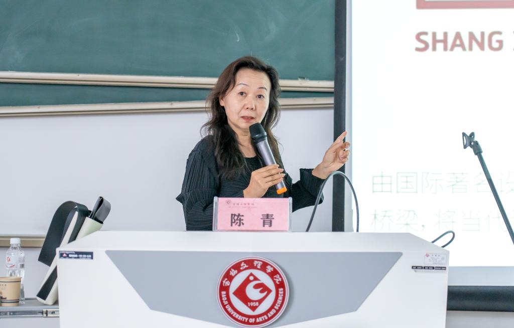 陈青教授对传统手工技艺的特点,品牌的内涵进行了详细的讲解,并结合个人的艺术创作实践深入浅出地讲解如何在现时代利用传统手工技艺来进行创新设计,系统梳理了手工技艺的设计转型策略。陈青教授的报告将设计实践与理论研究相结合,鲜明生动、实践性强,为我院设计学科专业发展及艺术创作提供了指导。