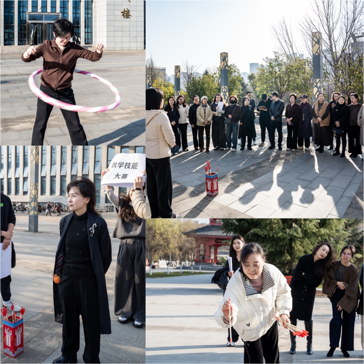 投壶游戏作为传统的文化娱乐项目,也在活动中备受欢迎。老师们站在指定位置,手持箭矢,瞄准远处的壶口,小心翼翼地投出。在投壶过程中,老师们感受着传统文化的独特魅力,在一投一掷间,展现出优雅与从容。
