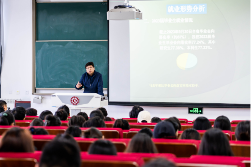 招生就业处副处长史建刚分析了就业形势,解读了就业政策,鼓励同学们端正就业心态,找准自身定位,做好充足的准备迎接毕业季的到来。并针对毕业生求职中可能遇到的常见问题给出建议。