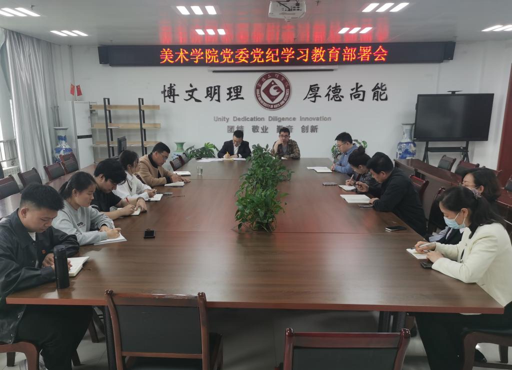 4月15日下午,美术学院党委召开党纪学习教育工作部署会。学院党委委员、各党支部书记、支部委员参加了会议。