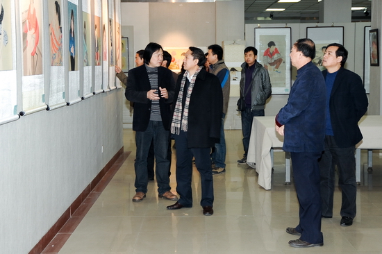 11月15日上午,院党委书记、院长王志刚,副院长傅志军在艺术楼美术展厅参观了我系举办的“第二届重点建设课程《工笔人物画》教学汇报展”。