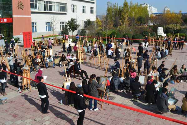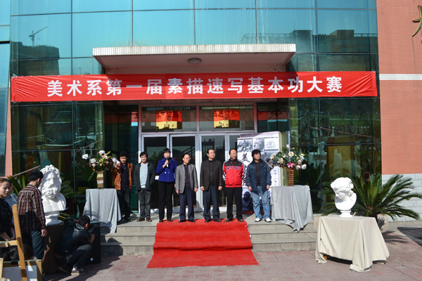 为了将教学与学生素质拓展相结合,11月19日下午1:30美术系举办了素描速写基本功大赛。在热烈的礼炮声中,第一届素描速写基本功大赛在艺术楼前开幕。莅临开幕式的有学院党委宣传部部长彭志启、学院学工部部长、学生处处长、就业中心主任李周让、美术系党总支书记唐晓育、美术系主任刘进锁、油画教研室主任严仕云、国画教研室主任王彦军、水彩教研室主任朱兵。开幕式由唐晓育书记主持。