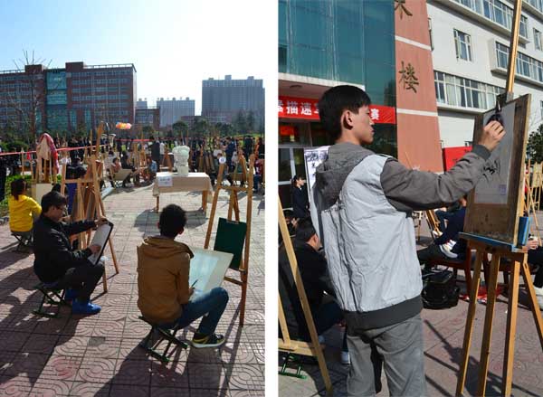 此次大赛分三个版块(素描石膏像、素描人头像、风景速写)、17个小组。在冬日的阳光里,参加大赛的235名学生用自己的热情和美术基本技能描绘着自己眼中的世界。他们在3个小时的素描中,从不同的角度诠释着自己眼中的人物形象;1个小时的速写里,更多的是对校园景致的抒写,洋溢着他们对校园的热爱之情。