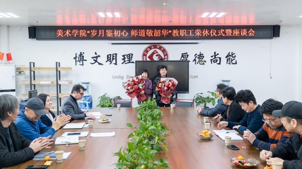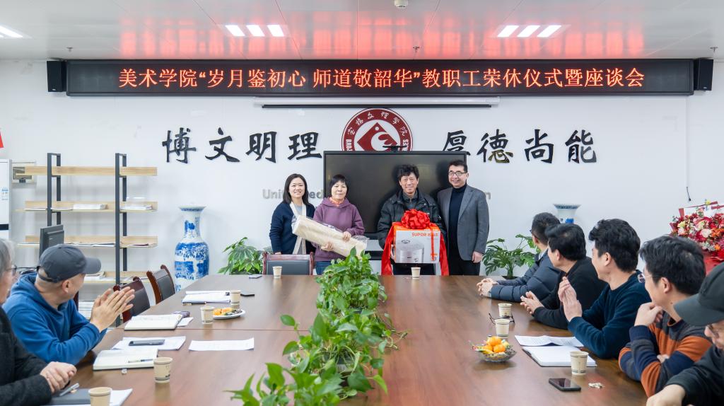1月9日下午,博文楼会议室内欢声笑语,情意浓浓,美术学院党政领导、荣退教师和师生代表欢聚一堂,以最真挚的情谊,为2024年退休教师严仕云、王岚举行了“岁月鉴初心、师道敬韶华”荣休仪式,院工会主席王彦军主持仪式。
