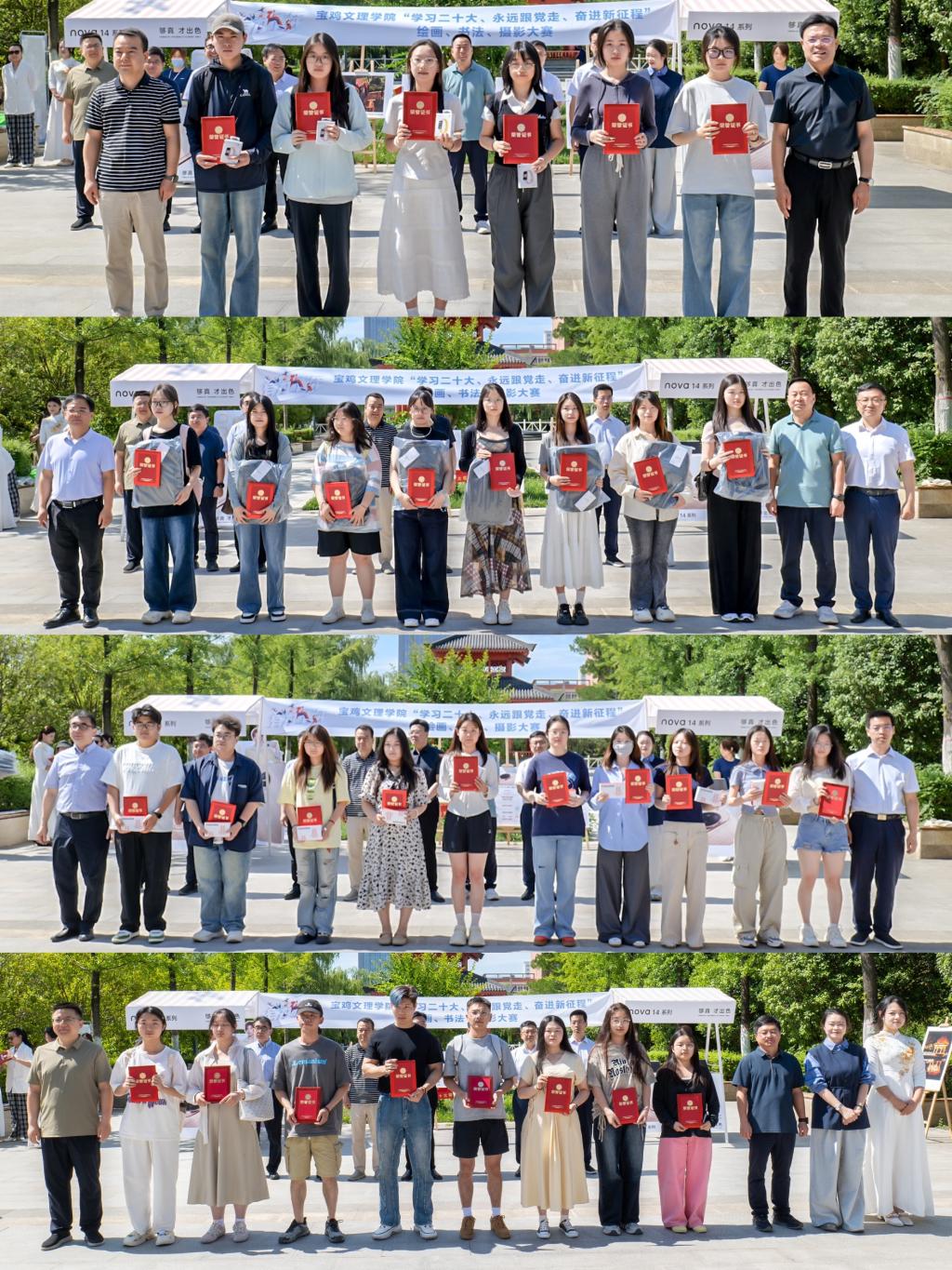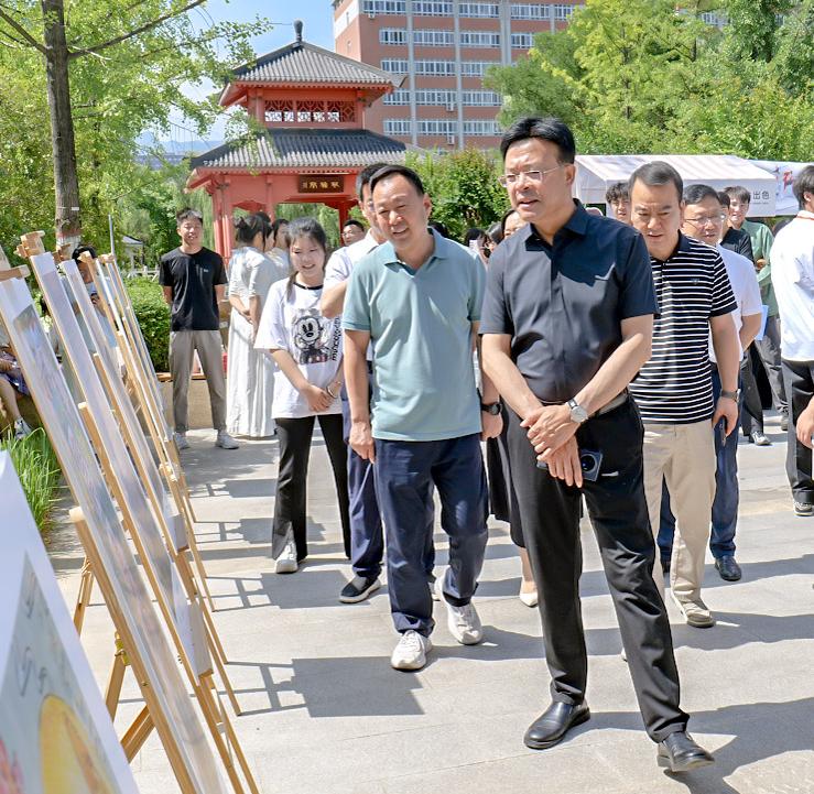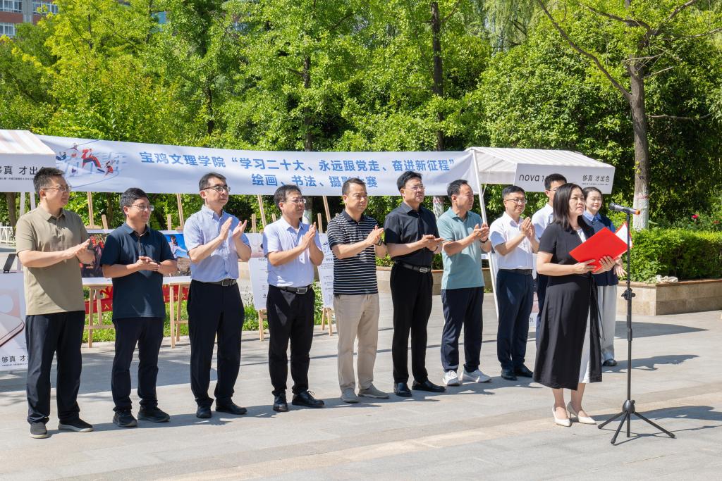 6月5日上午,由校团委主办,美术学院团委承办的“学习二十大,永远跟党走,奋进新征程”绘画、书法、摄影大赛获奖作品展开幕式在高新校区博文楼前广场举行。校党委副书记韩干校宣布展览开幕并与合作单位鑫诚通讯器材有限公司总经理王向东一起为获奖学生颁奖。开幕式由美术学院党委书记崔小丽主持。