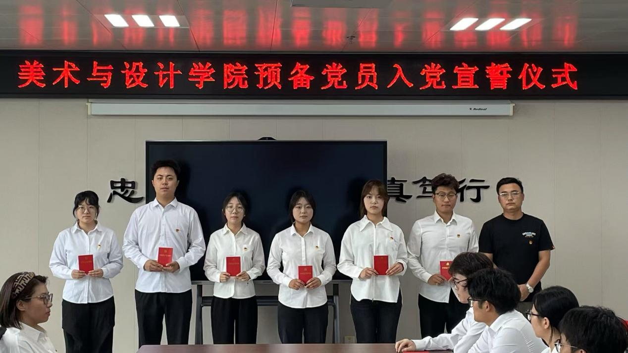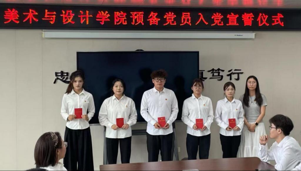 仪式在庄严的氛围中拉开序幕,安芮影宣读了《关于同意接收郑玉微等11名同志为中共预备党员的批复》和《关于同意接收徐业城等15名同志为中共预备党员的批复》。全体预备党员面向党旗、举起右拳,在常建博带领下庄严宣誓,一句句铿锵有力的誓言彰显着新党员们全心全意为人民服务、为党和人民事业奋斗终身的坚定决心。单福顺、陈蕾分别为新接收的预备党员发放了《中国共产党章程》和党徽。刘琦和吴曼分别代表全体新入党的同志作表态发言,表示成为预备党员是荣誉更是责任,未来将以党员标准严格要求自己,在专业学习与社会实践中发挥先锋模范作用。