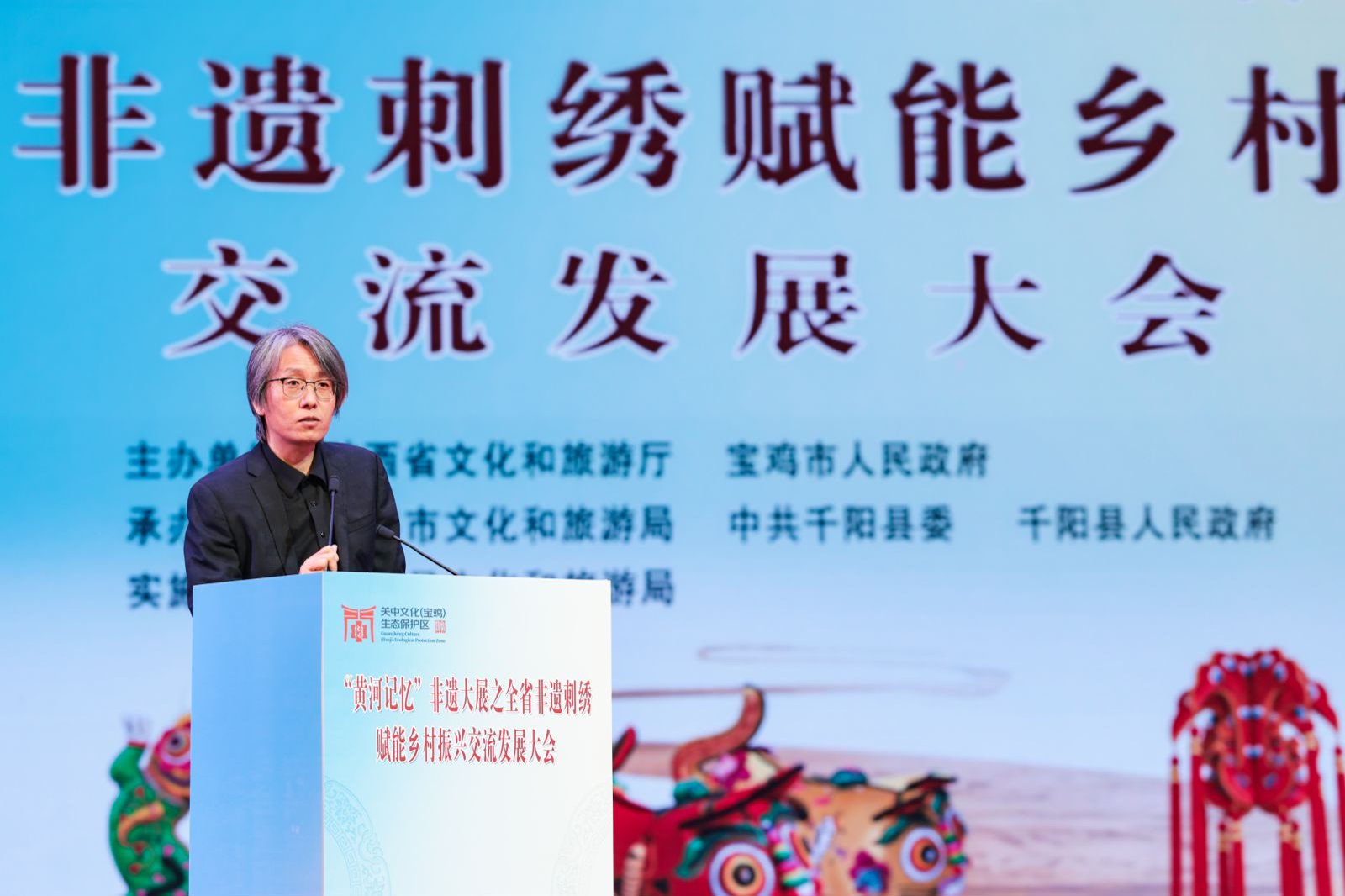 9月25日,由陕西省文化和旅游厅、宝鸡市人民政府主办的“黄河记忆”非遗大展之全省非遗刺绣交流发展大会在宝鸡市千阳县举行。作为高校代表,我院李新昌教授、马箖珺博士、黄翠博士、李映琪老师等受邀参会,深度参与非遗活化与乡村产业研讨,推动校地协同助力“非遗+乡村振兴”落地。